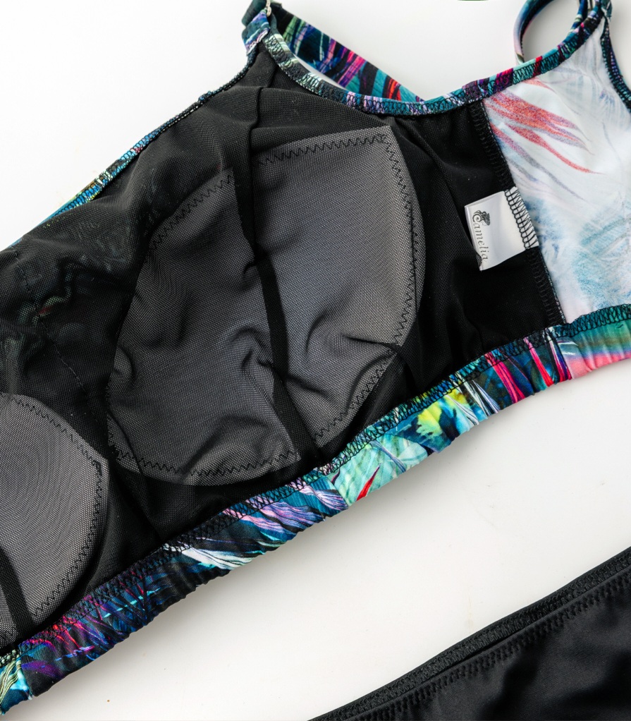 2. Специальные кармашки для протезов выполнены из сетки и находятся с обеих сторон внутри чашек купальника .