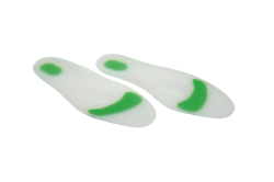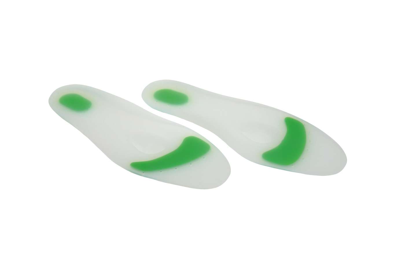 Назначение Разгрузочные стельки применяются для профилактики и лечения в тех случаях, когда имеются следующие заболевания и симптомы: продольное и продольно-поперечное плоскостопие; синдром диабетической стопы начальной степени; трещины и сухость кожи подошвенной части; пяточные шпоры; болезненные ощущения при длительной ходьбе и интенсивных физических нагрузках; варикозное расширение вен нижних конечностей; после перенесенных травм и операций на нижних конечностях и стопах. Эффективно снимают ударную нагрузку при ходьбе и занятиях спортом. Благодаря отсутствию трения предотвращают появление натоптышей. Стельки обладают массажным эффектом, улучшают кровообращение. Имеют специальные элементы разгрузки пятки и переднего отдела стопы. Структура и материал Стельки изготовлены из экологически чистого силиконового геля, который не вызывает аллергической реакции. Размер стопы от 23см до 24см